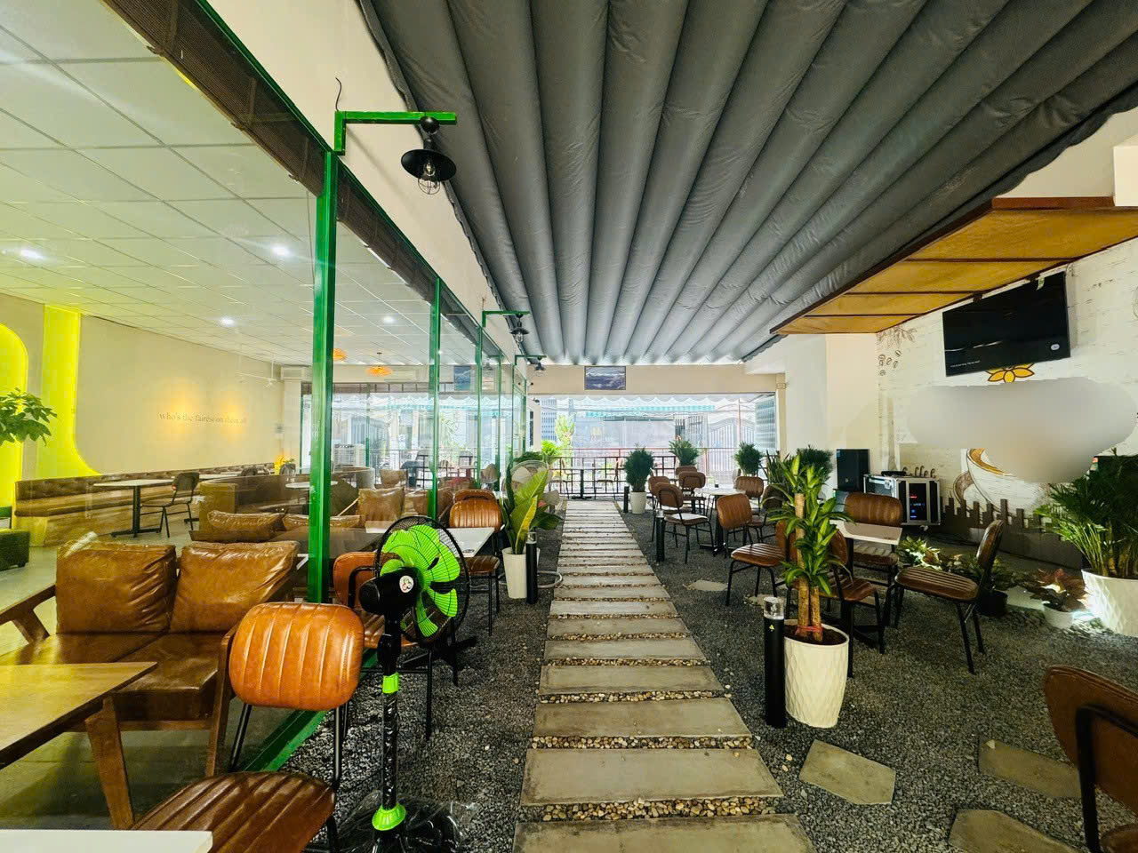 - Diện tích: 16 x 20m, mô hình cafe sân vườn kết hợp phòng máy lạnh, có bếp nấu ăn đầy đủ